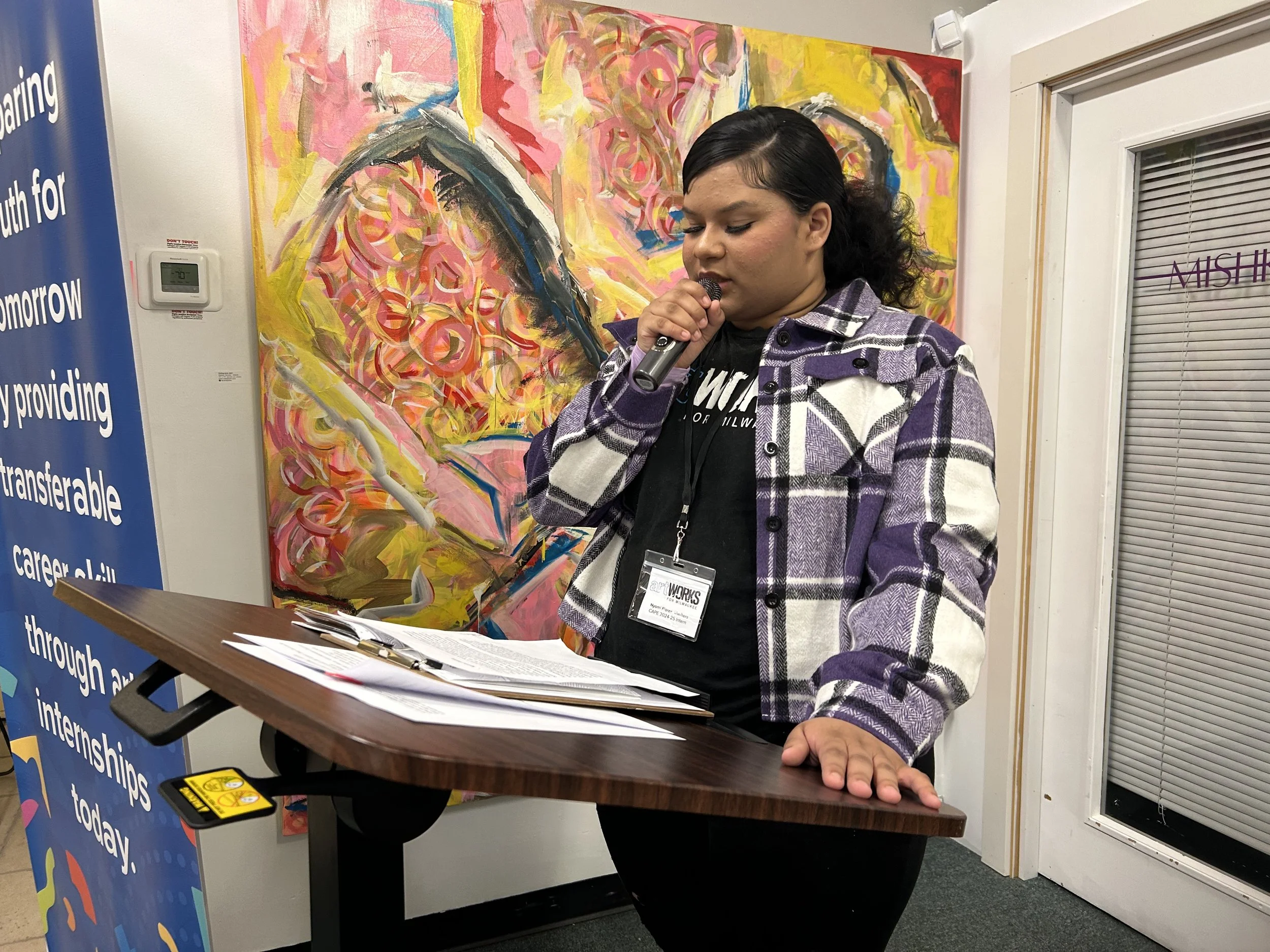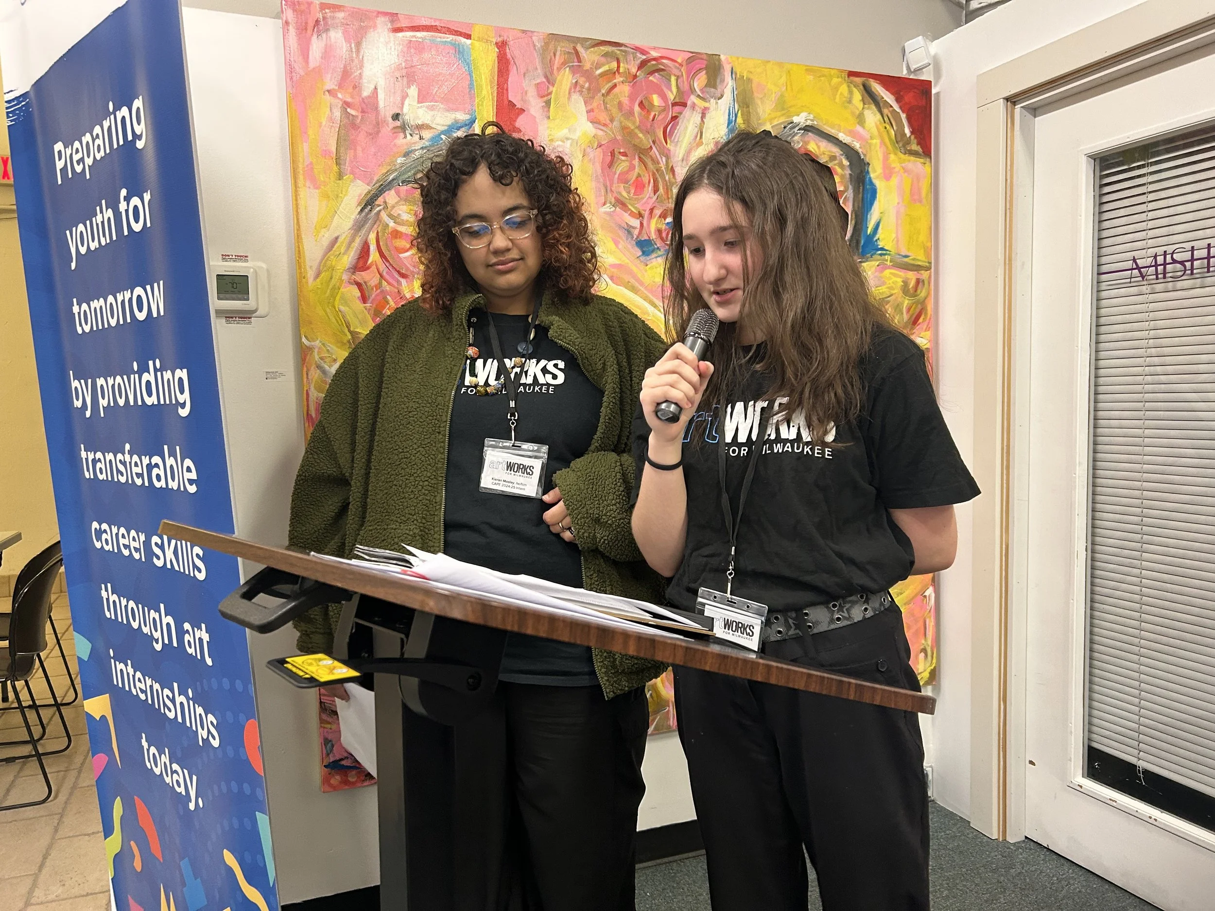 Additionally, interns showed tremendous growth by confidently pricing and selling their own art while bravely sharing their experiences over the past program year. Despite any initial fears, they spoke passionately about the lasting connections they made and the personal development they achieved.